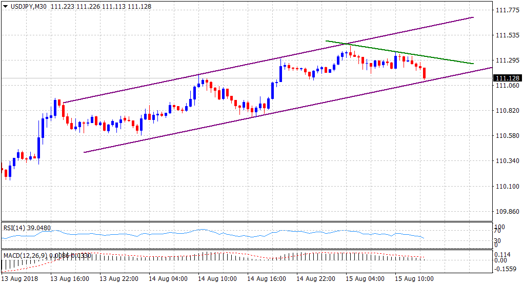 “¢ The pair has been trending higher alongside an ascending trend-channel formation on the 30-min chart, albeit descending trend-line now seems to hinder the positive momentum.