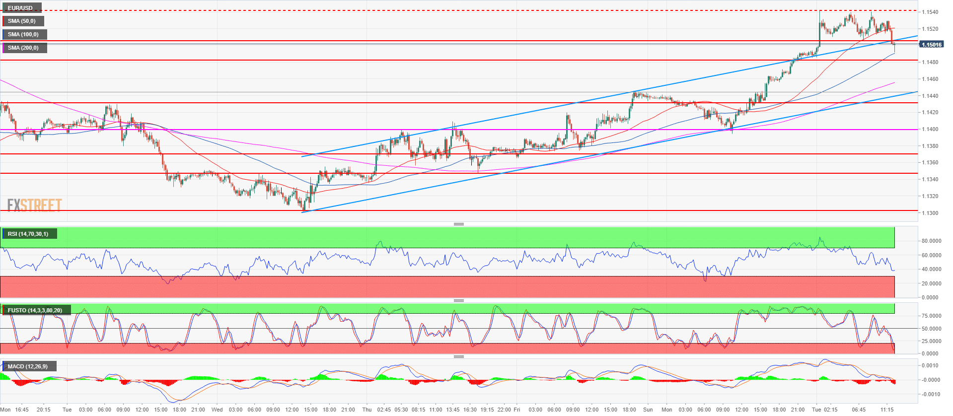 - EUR/USD is currently re-integrating the bullish channel as it is finding some dynamic support at the 100-period simple moving average. Bulls near-term target is the daily high at 1.1542 followed by 1.1572 July 19 low.