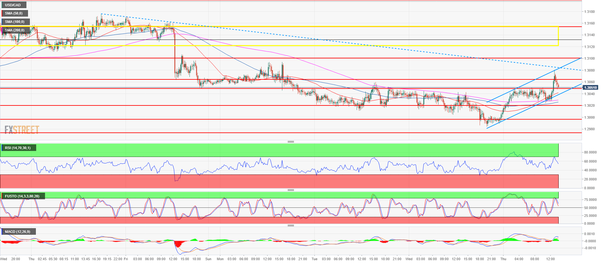 • USD/CAD is forming a bull channel as the market found support at the 200-period simple moving average (SMA). The 50 SMA crossed above the 200 SMA suggesting building bullish momentum. Targets to the upside are located near 1.3100 and 1.3120-1.3155 area.
