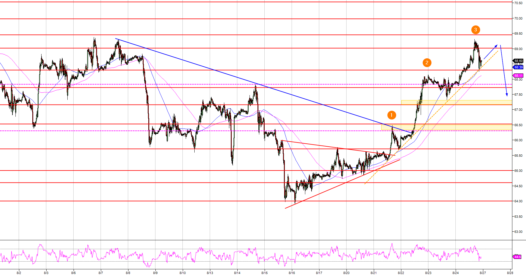 Support 2: 67.84 August 14 swing high