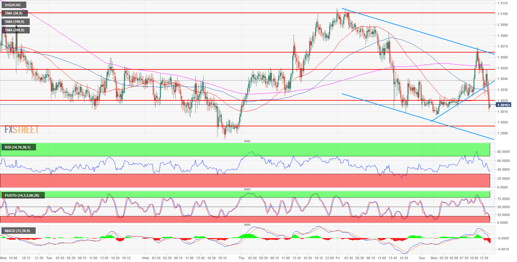 USD/CAD Technical Analysis: Bear channel targets a break below 1.3000 figure