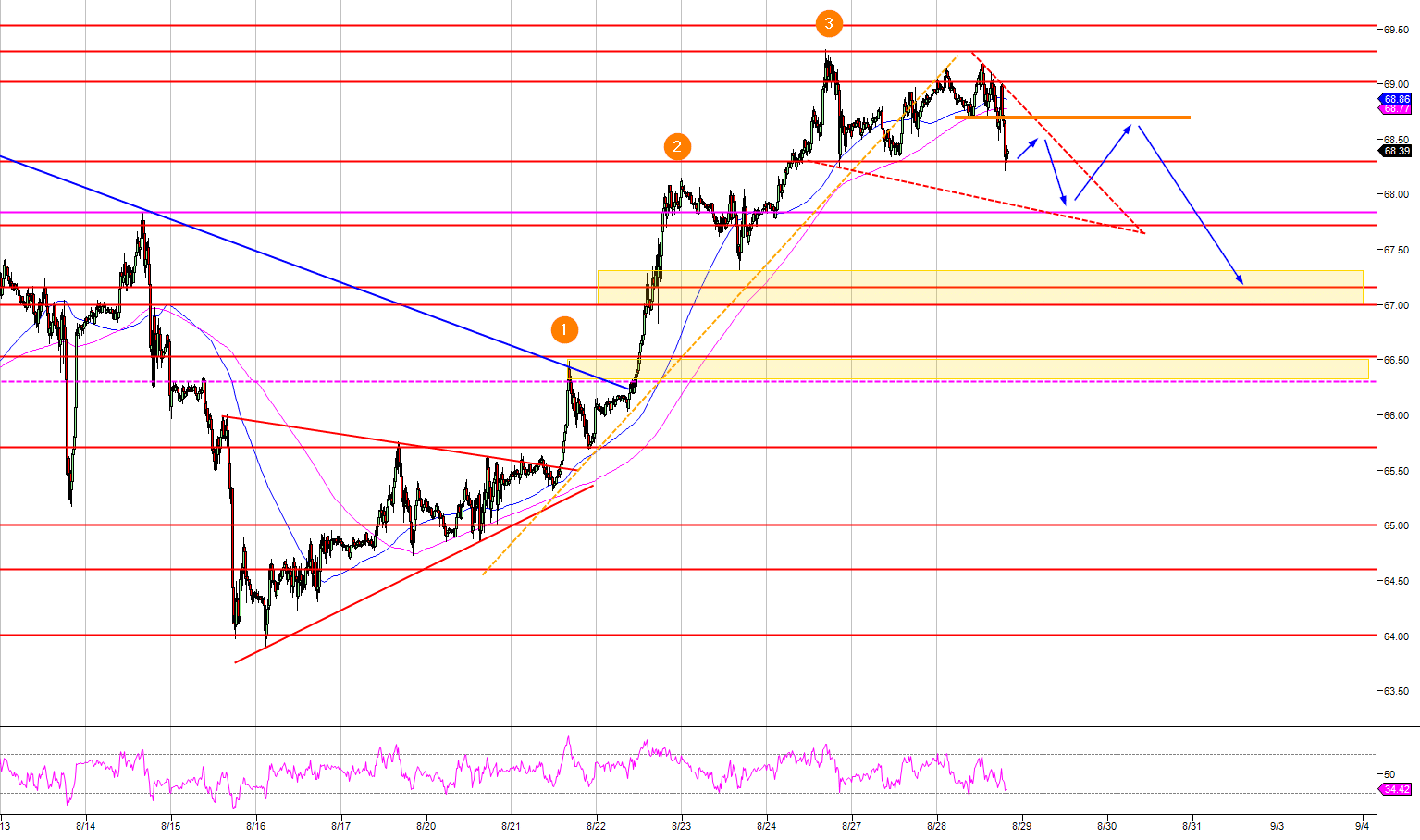 Support 2:            67.84 August 14 swing high