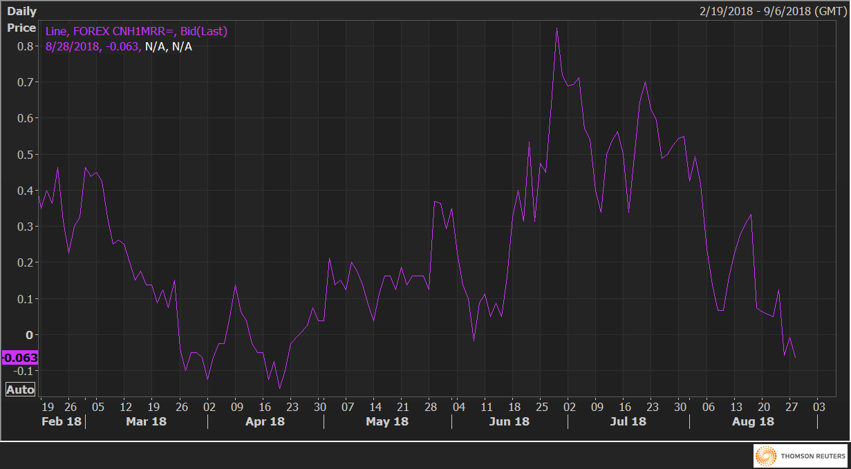 USD/CNY risk reversals: CNY call value hit highest since April 20