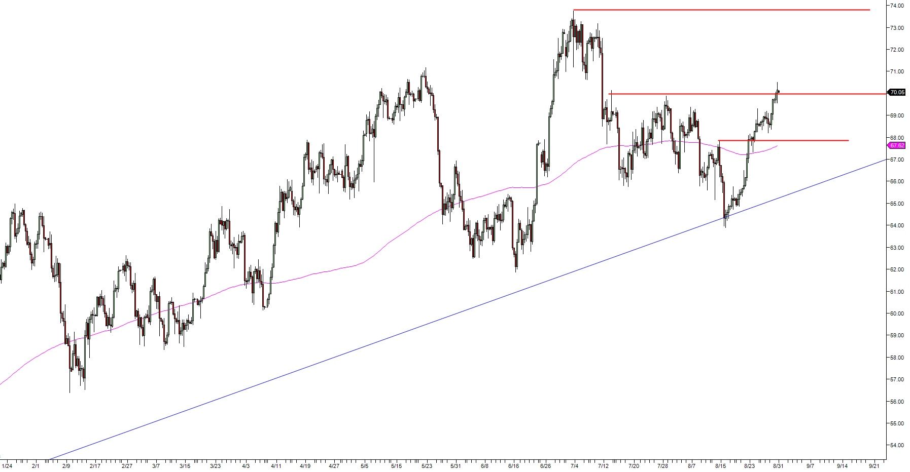 Support 2: 69.30 August 24 high
