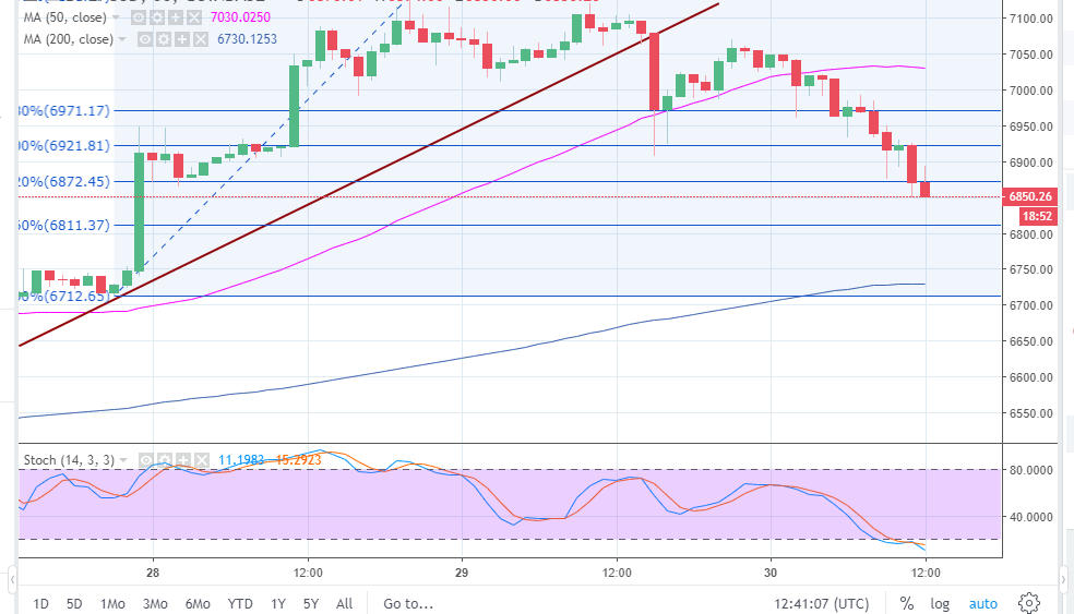 Bitcoin made an incredible recovery from $6,700 to trade above $7,000 as reported by FXStreet. The asset corrected even higher above $7,100 and recorded a high of $7,130.97 before a reversal occurred. BTC/USD tried to maintain the support above $7,000 but sellers continued to seek equilibrium following the recent bull run. Bitcoin has broken below the support at $6,900 but it is making a recovery after finding support at $6,800. The stronger support still lies at $6,750 while the journey towards $7,000 will encounter tough resistance at $6,900 and $6,950.