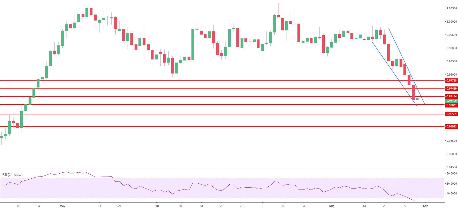 Resistance 1: 0.9716 current August 30 high