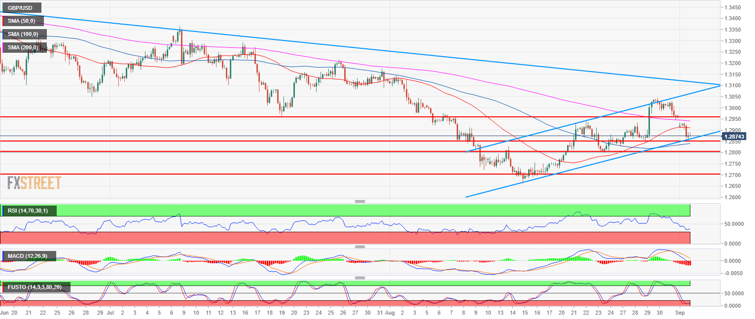 - GBP/USD is currently consolidating the recent leg down and bears need a breakout below 1.2845, (August 29 low) in order to confirm the bear trend continuation.