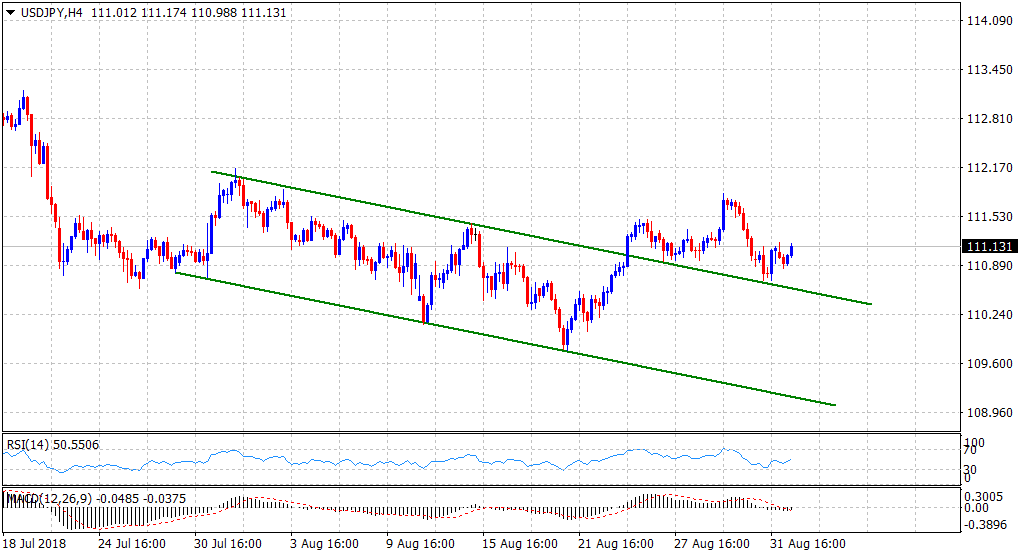 “¢ However, mixed technical indicators on the 4-hourly chart haven’t been supportive of the pair’s uptick of around 30-pips from an intraday low level of 110.85.