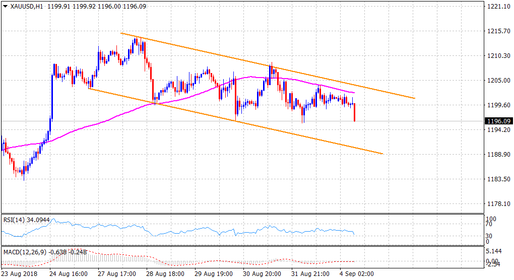 Alternatively, recovery attempts back above the $1200 handle might continue to confront some fresh supply near 100-hour SMA and is closely followed by the trend-channel hurdle, currently near the $1204 region. Only a decisive break-through the mentioned barrier would negate the bearish outlook and prompt some near-term short-covering bounce.