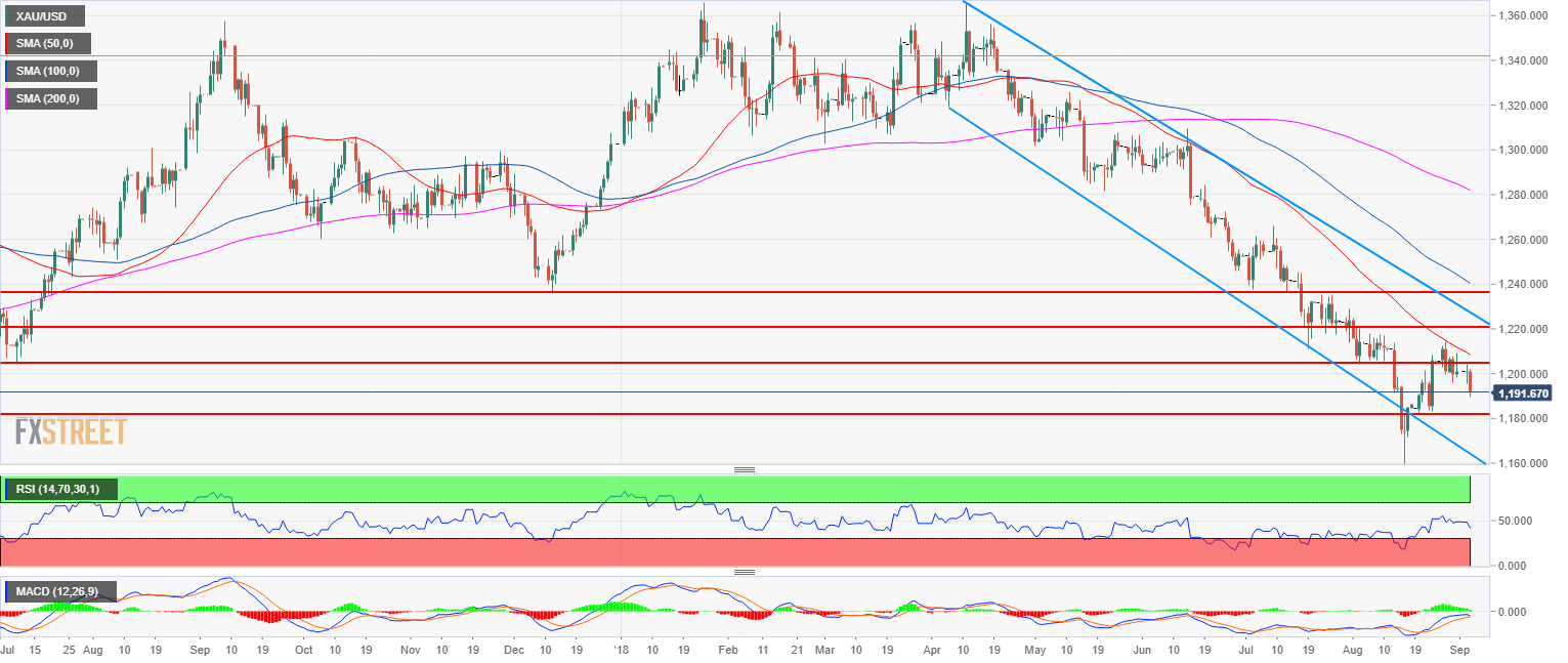 - Gold is trading below its 50, 100 and 200-day simple moving averages while the RSI is below 50, all suggesting that the Yellow Metal has room to fall to 1,182.90 (August 24 low).