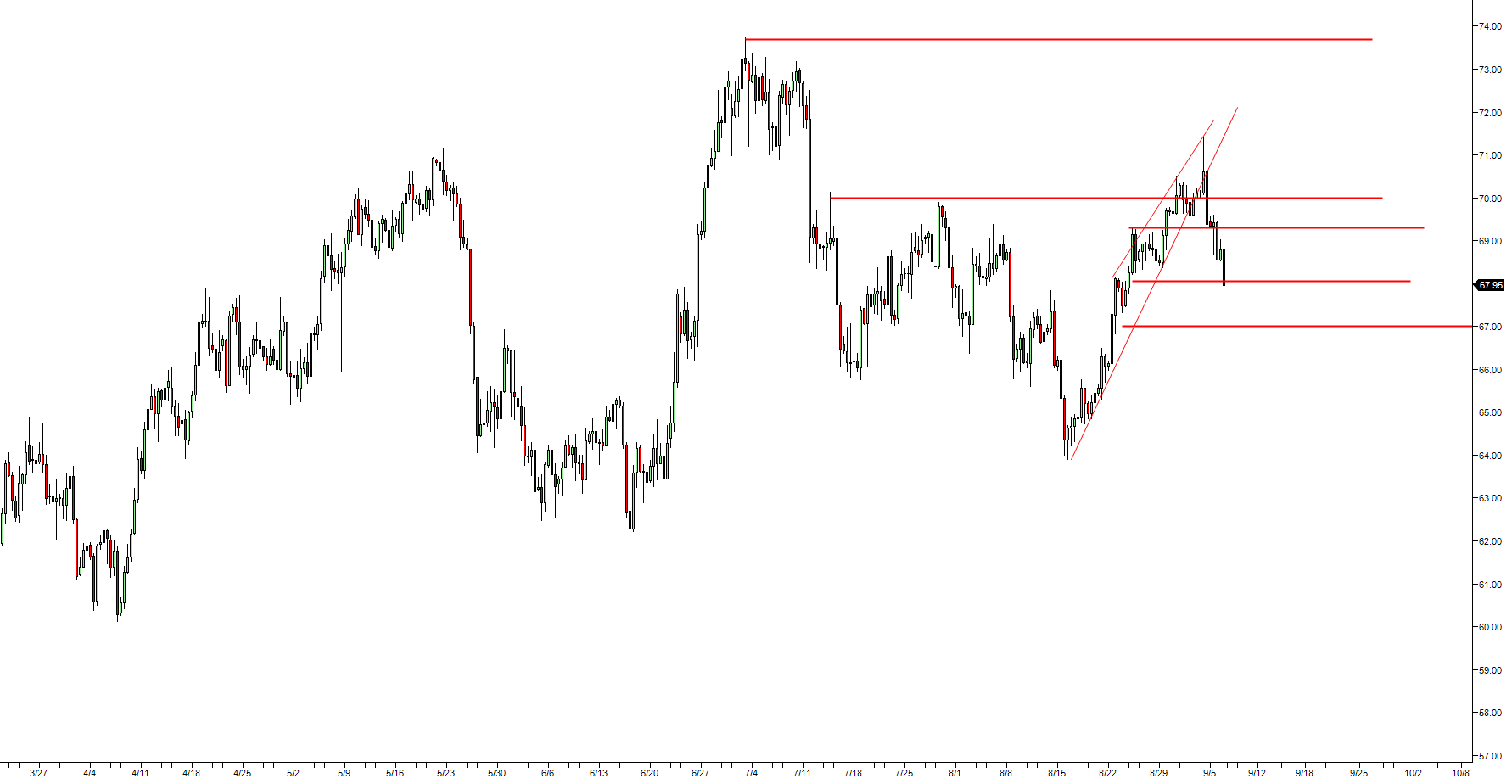 Support 1:       67.84 August 14 swing high