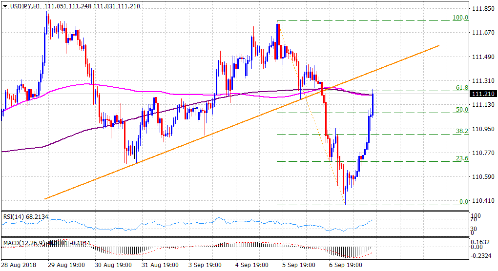 “¢ The up-move is likely to confront stiff resistance at a confluence region, comprising of 100/200-hour SMAs and 61.8% Fibonacci retracement level of the decline over the past 24-hours.