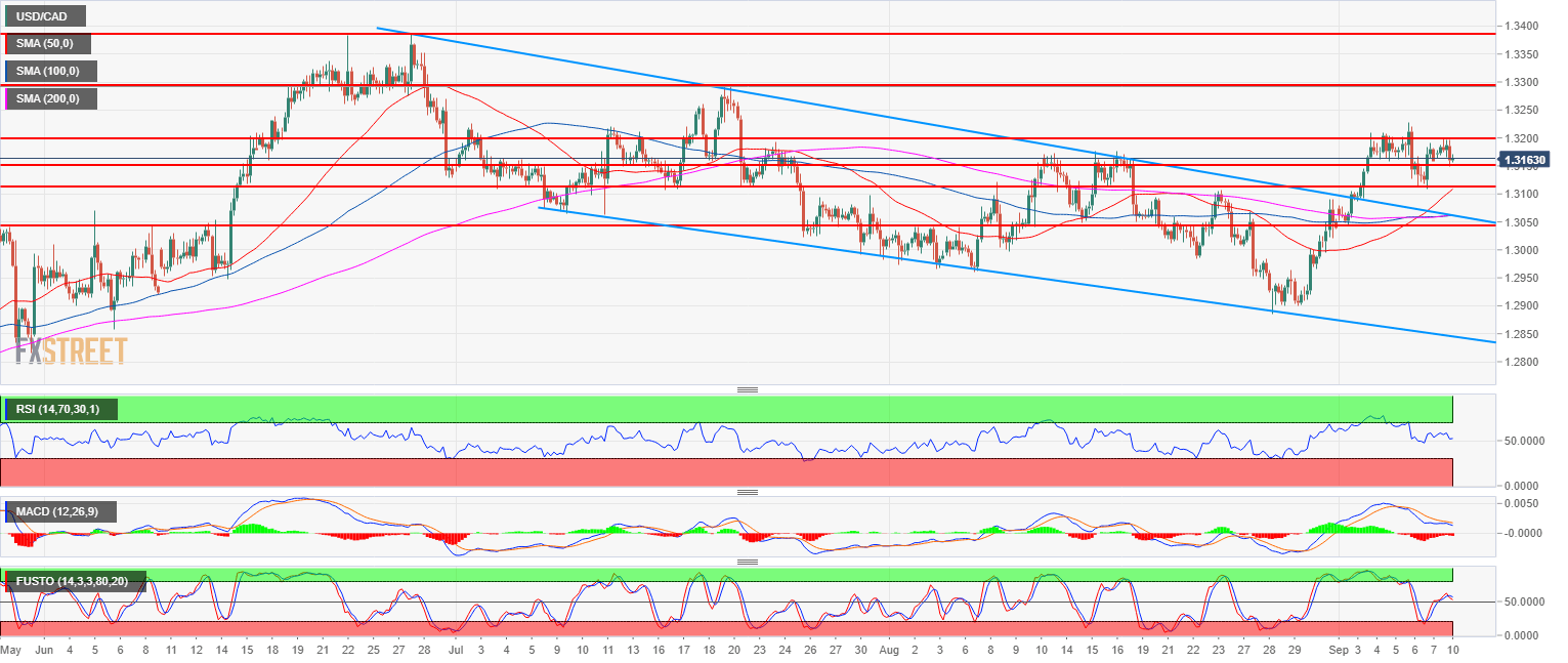 - USD/CAD main bull trend is currently on hold as the market is consolidating below the 1.3200 figure.