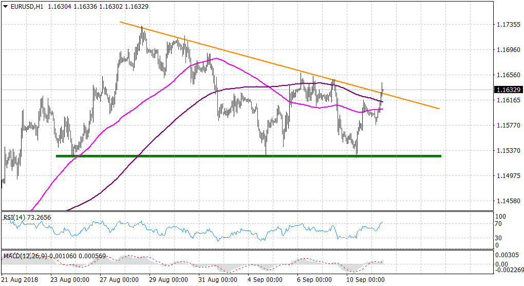 “¢ The pair jumped back above the two key hourly moving averages (100 & 200-hour SMA) and finally managed to break through a short-term descending trend-line resistance.