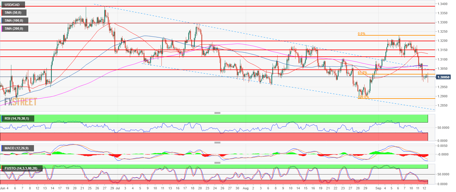 - USD/CAD is consolidating the recent leg down near the 1.3000 figure and the 61.8% Fibonacci retracement level from the late August-early September bull run.