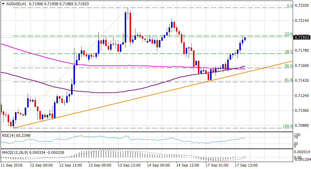 “¢   The up-move now seems to have paused near 23.6% Fibo. level, ahead of the 0.7200 handle, albeit positive technical indicators support prospects for an extension of the pair’s intraday bullish momentum.