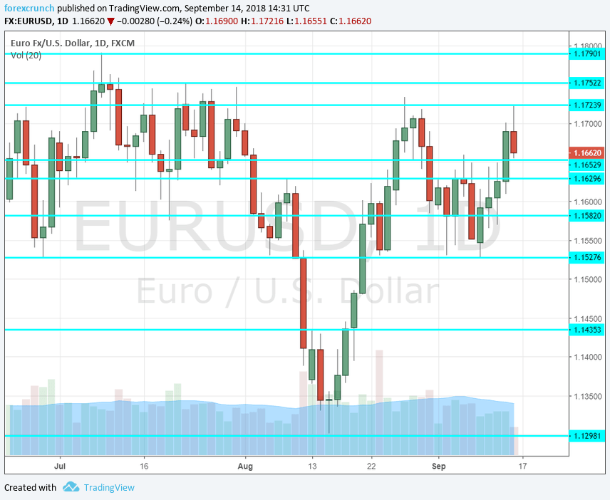 Euro/dollar moved up and then down, retreating from the 1.1650 level mentioned last week before surging to higher ground.