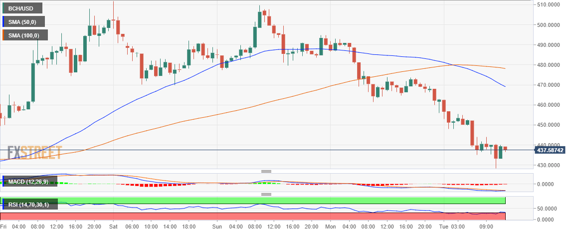 Bitcoin Cash price extended the declines that dominated through yesterday’s trading session on Tuesday. The support at $450 could not hold and the bears continue pushing for more declines. While heading to $430 formed a low at $433. The support at $430 is still holding water as buyers hammer at the immediate resistance level highlighted at $440. The broken support bat $450 will hinder bullish movement towards $470 in the medium-term. The coveted $500 is out of reach, at least for now.