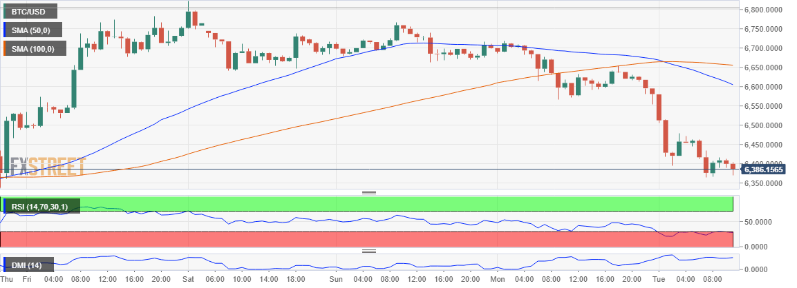 - Bitcoin price heads for the support at $6,350 while $6,300 is beckoning.