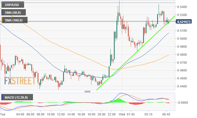 The above news did not move the market in terms of price performance but it is positive especially for the exchanges, which are the main drivers of mass adoption in the cryptocurrency space. Ripple price is trading at $0.52 after reacting to the subtle double-top pattern mentioned in the first paragraph. Consequently, the price has dropped below the short-term trendline support, although the trend is somehow bullish and a retracement above $0.53 could be underway in the short-term. The key resistance is at $0.54 but the bulls will not rest until they brush shoulders with $0.6. On the other hand, several support areas are highlighted on the chart; at $0.51, $0.49 and the major support at $0.44.
