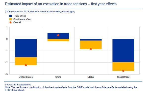 ‘The ECB study simulates a 10 percent U.S. tariff on all imports and an equivalent retaliation from other countries.