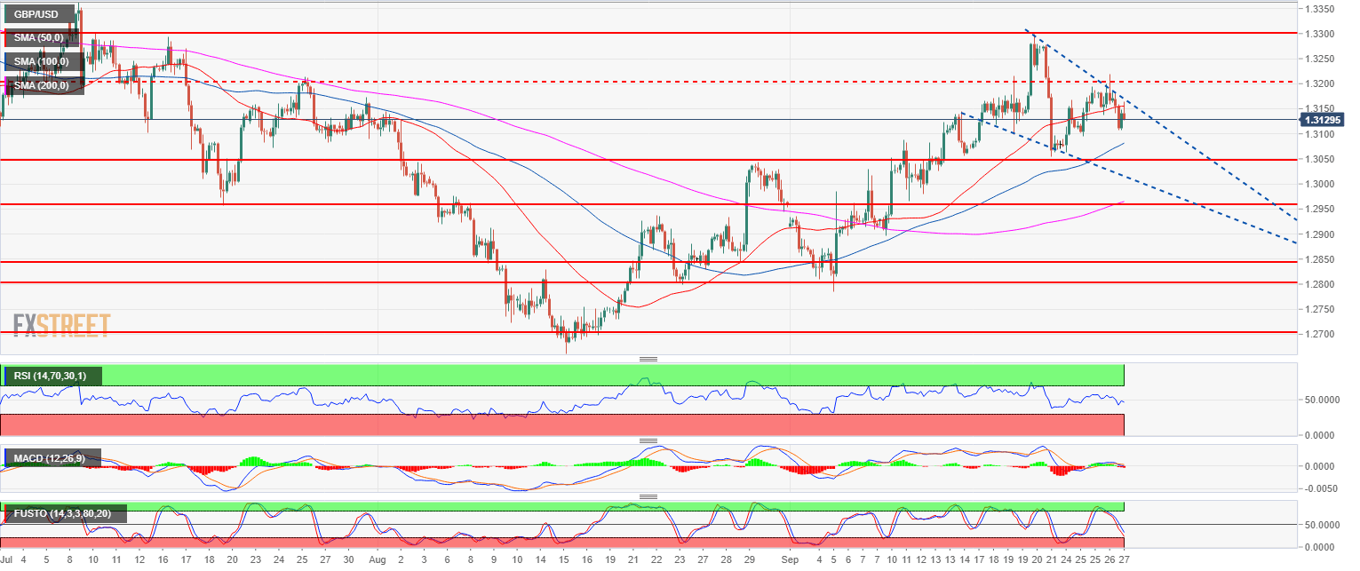 - GBP/USD found resistance at the 1.3200 figure and the 50-period simple moving average as the RSI, MACD and Stochastics indicators are weakening. All suggesting that the bearish pullback can extend towards 1.3050 and 1.3000 figure.