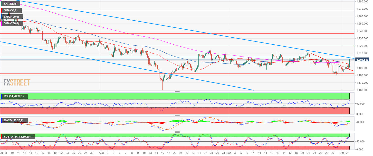 - Gold is breaking out towards the higher part of the range as it is trading near 1,200.00. The next target is 1,211.17 (July 19 low).