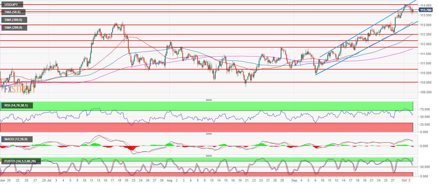Home USD/JPY Technical Analysis: USD/JPY finds resistance above 113.50 level as the bull trend remains intact
