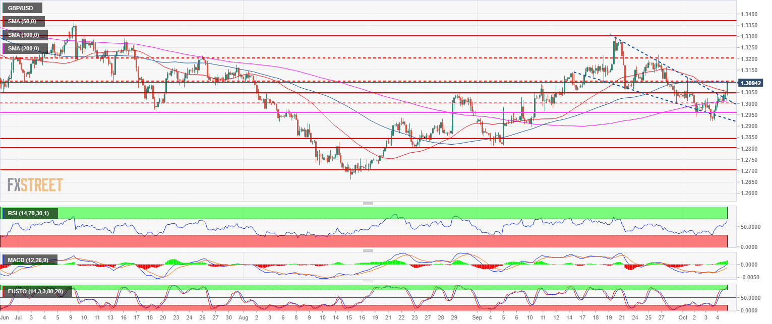 - GBP/USD bulls next objective is to break above 1.3100 and the 100-period simple moving average to target 1.3150 (September 21 low).