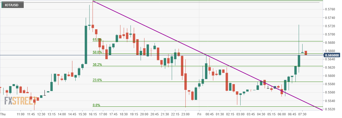 - IOT/USD defies the slight crypto carnage as it sets eyes on $0.57 key resistance level.