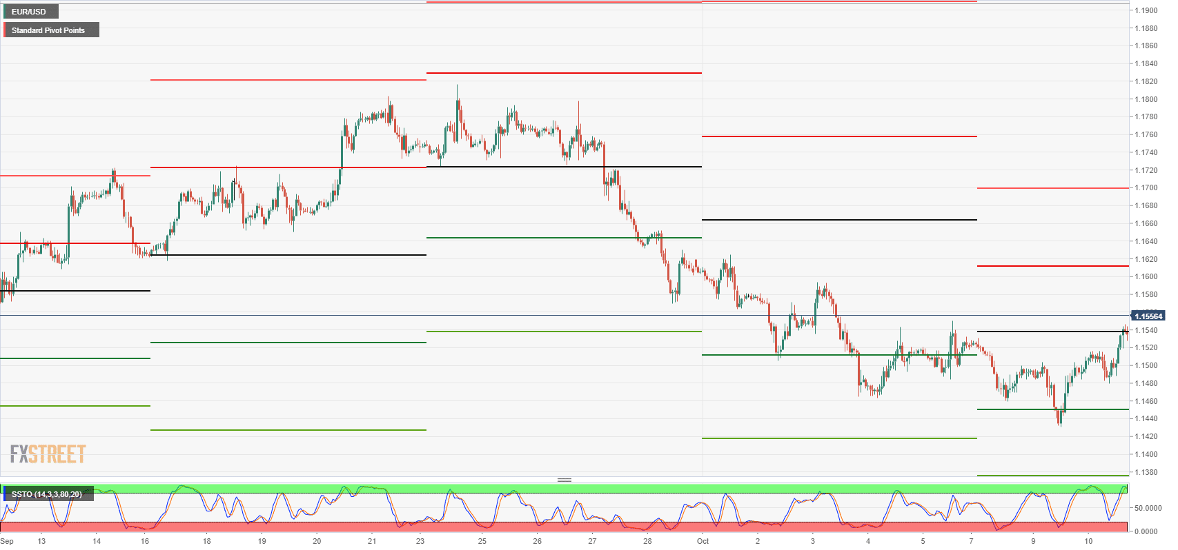 - The EUR/USD is now at a middling point near 1.1550, with buyers hoping the current rising trendline will hold.