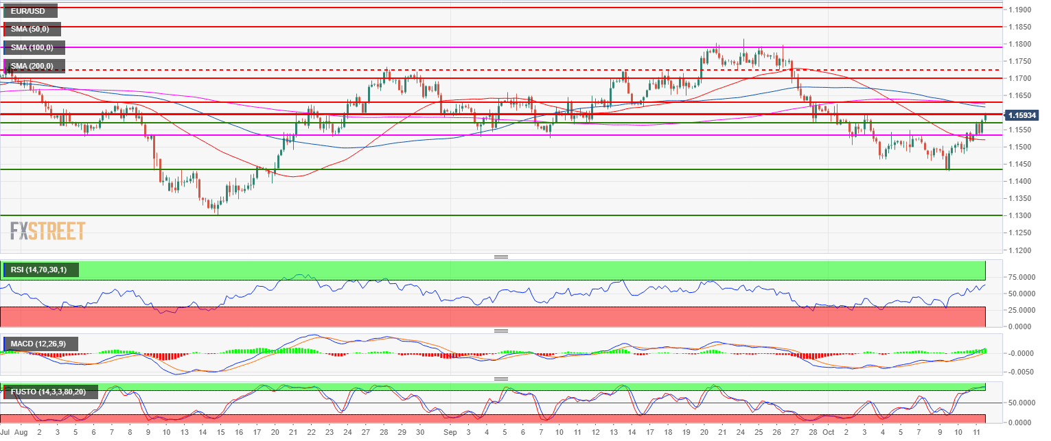 - EUR/USD is currently having a reversal up since Monday. Freshly released the US Consumer Price Index Ex Food & Energy year-on-year for September missed expectations at 2.2% versus 2.3% forecast. The data is weakening the USD and giving EUR/USD extra boost.
