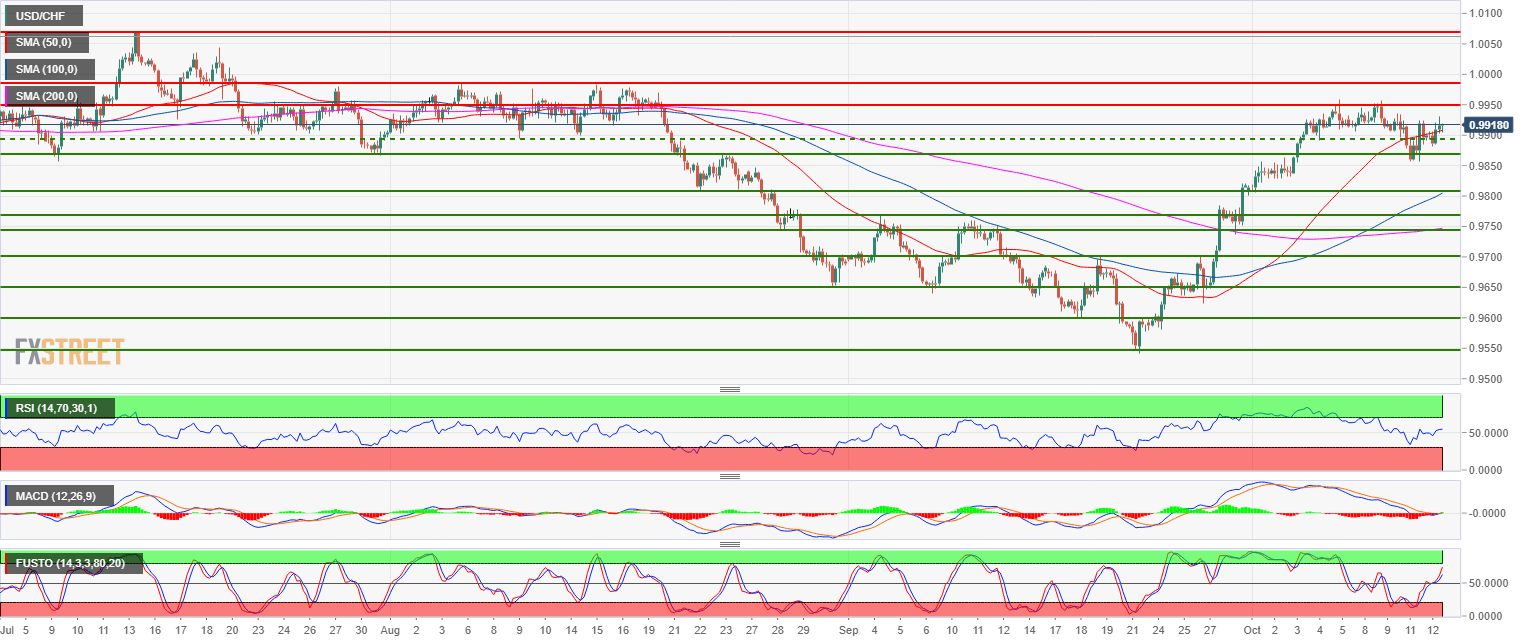 - In the absence of a sustained breakout above 0.9950, USD/CHF is poised to trade sideways to down towards 0.9891 (October 4 low), 0.9868 (July 31 low) and 0.9807 (August 22 low ).