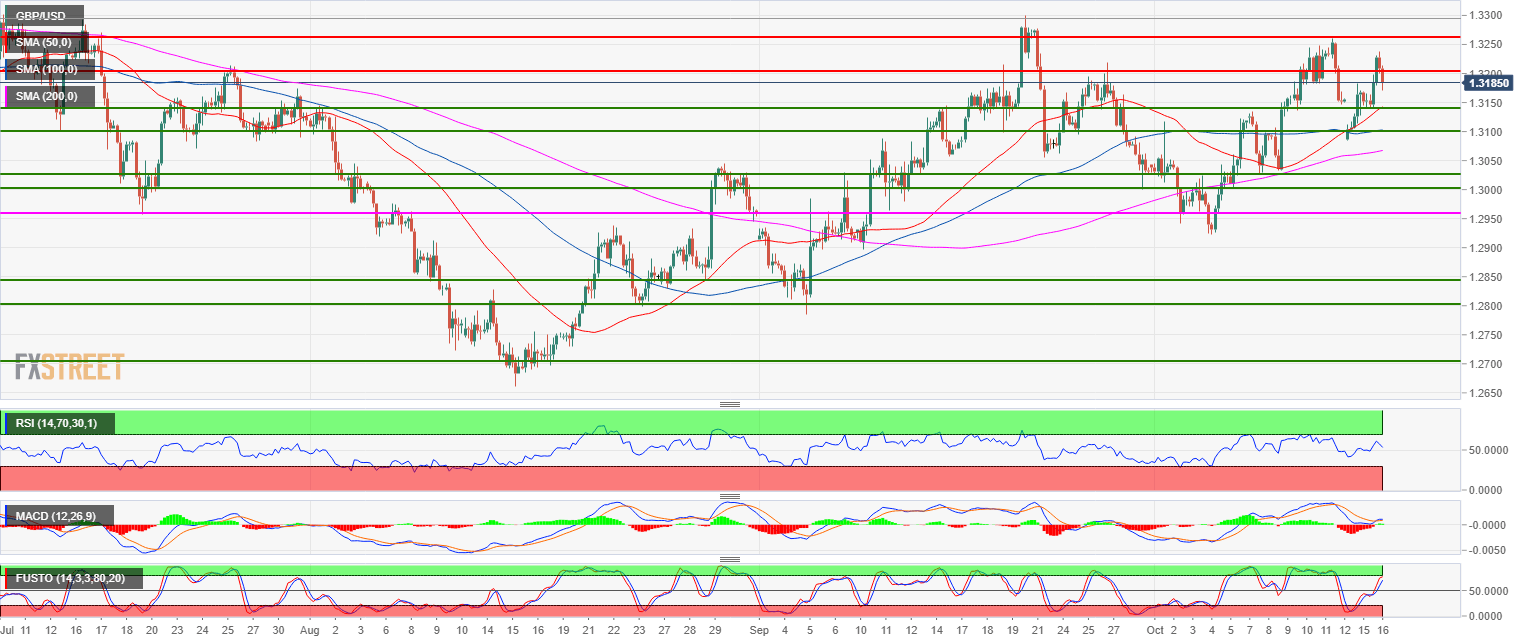 - Failure to recapture 1.3237 (the current October 16 high) can lead to a pullback down towards 1.3140 (current October 16 low) in the coming sessions.