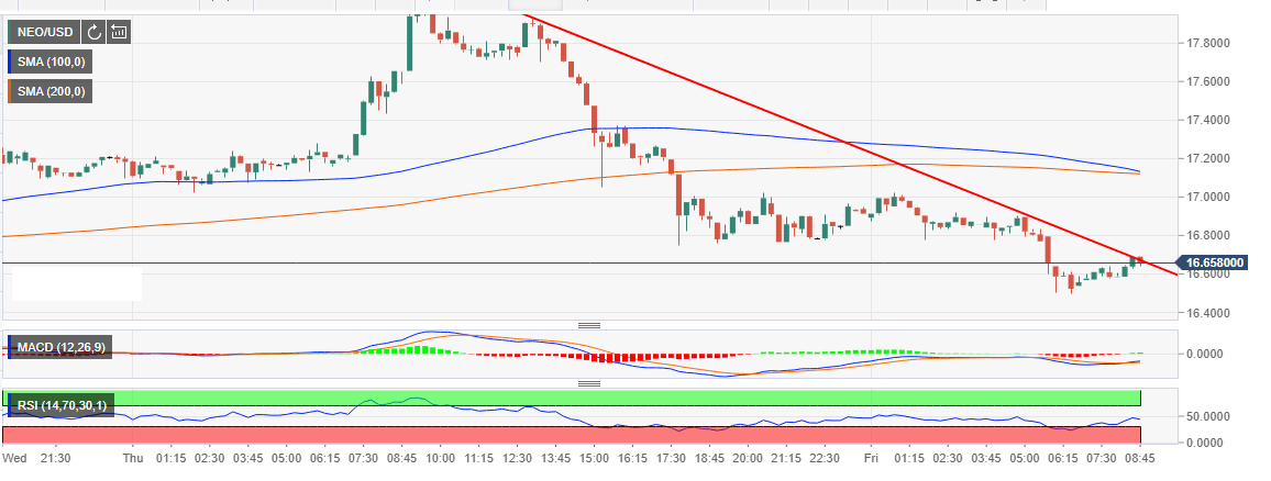 NEO showed its prowess during the trading on Thursday; as discussed in the price analysis yesterday, the digital asset was up 4% on the day. There was a bullish move that started around $17.00 supported by the 50 simple moving average (SMA). The price zoomed higher brushing shoulders with $18.00 but the trend turned bearish as the sellers bit back at the bulls.
