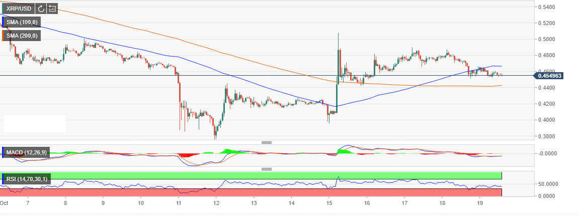 The $18 billion crypto is trading at $0.45. It has a 24-hour exchange volume of $414 million and has corrected lower 1.74% on the day. XRP/USD declines failed to find support at $0.47 but the support at $0.45 is holding ground. Moreover, Ripple is trading between the moving average support and resistance. The 100SMA is in the way of upside movement at $0.466 and the 200SMA will offer support at $0.44. The consolidating prices coupled with above positive news and Cobinhood support mean that Ripple could be stirring a bullish move in the short-term.