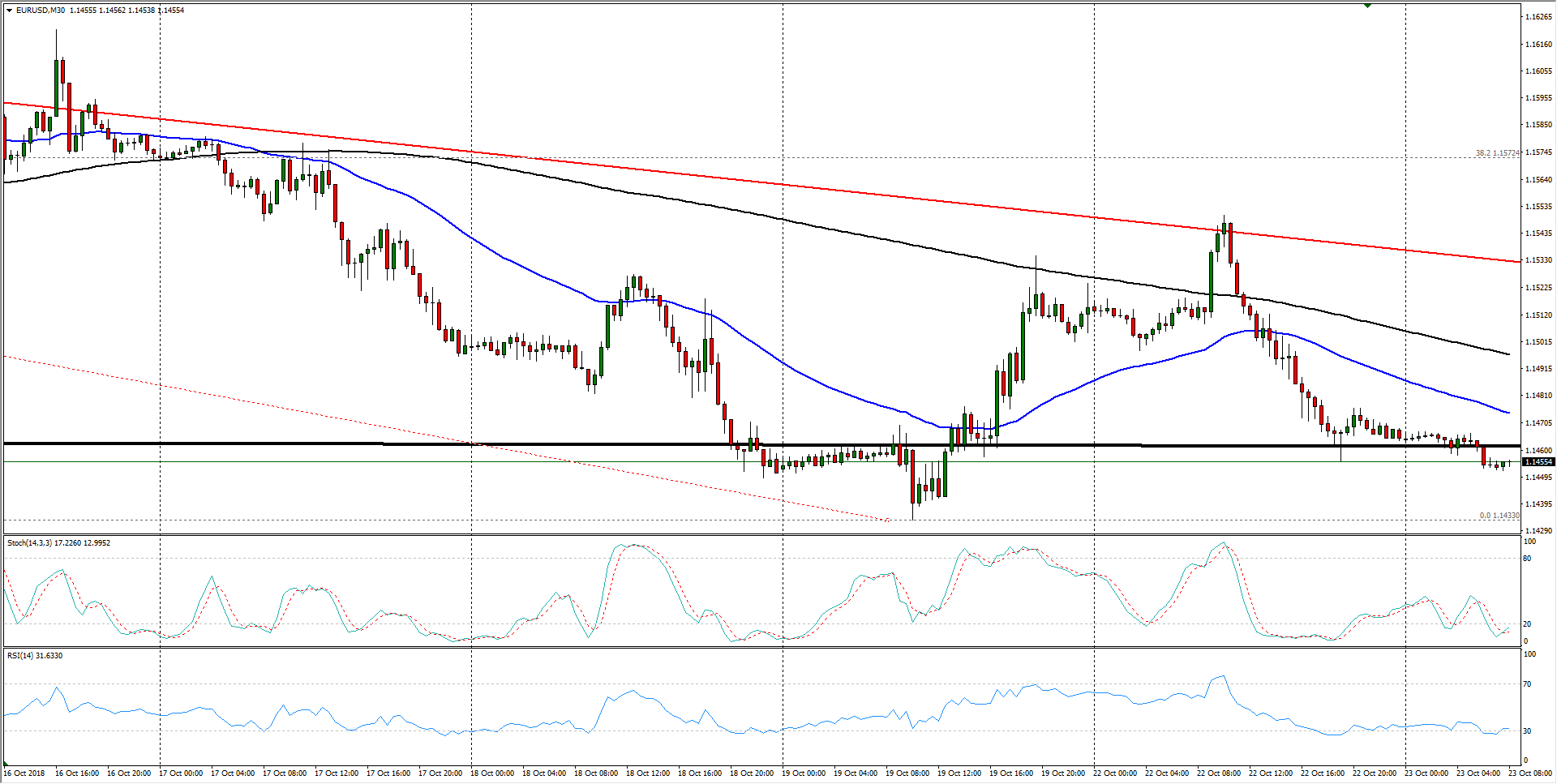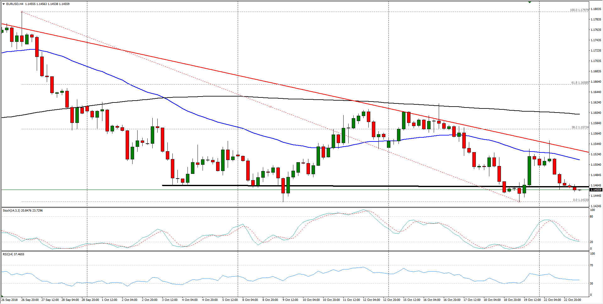 Over the past month, the EUR/USD has begun to shape up into a bearish wedge pattern, and rising potential for a firm break of the bottom of the pattern from 1.1460 will see the EUR/USD falling into new lows for 2018.