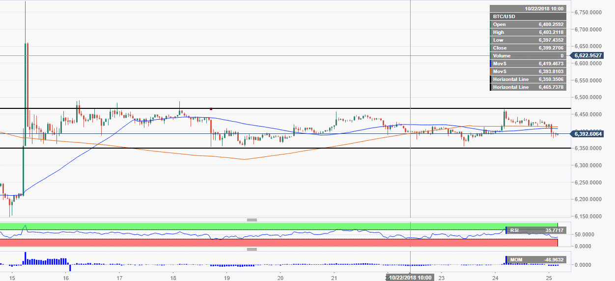 - BTC/USD is back below $6,400 support after an unsuccessful test of DMA50.
