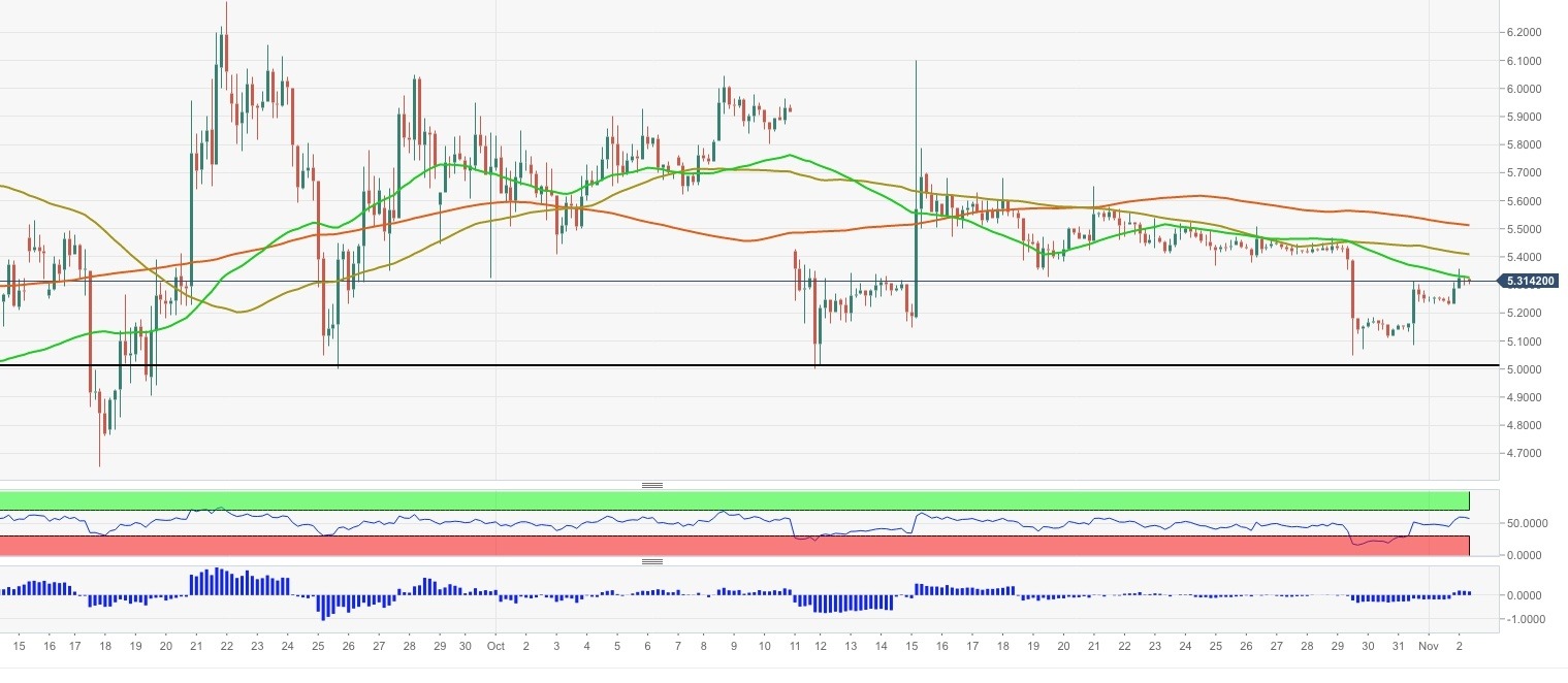 On the upside, the recovery is capped by $5.4 (SMA100, 4-hour) with the next focus on SMA200 (4-hour) at $5.5. The upper border of the recent channel at $5.60 is likely to cap the recovery. The ultimate support is seen at $6.00, a sustainable move higher is needed to mitigate the bearish pressure.