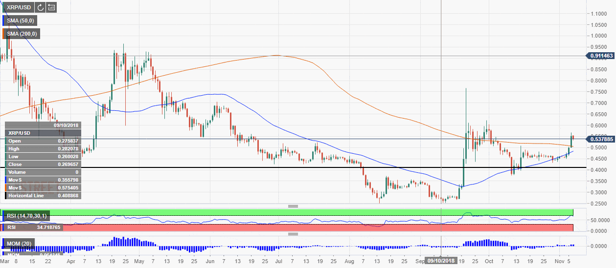 Also, a news that XRP may be added to Apple Pay through Wirex served as an additional catalyst that allowed the coin to explore the area above $0.54. While the Apple Pay integration is not a done deal yet, the community was very enthusiastic about it