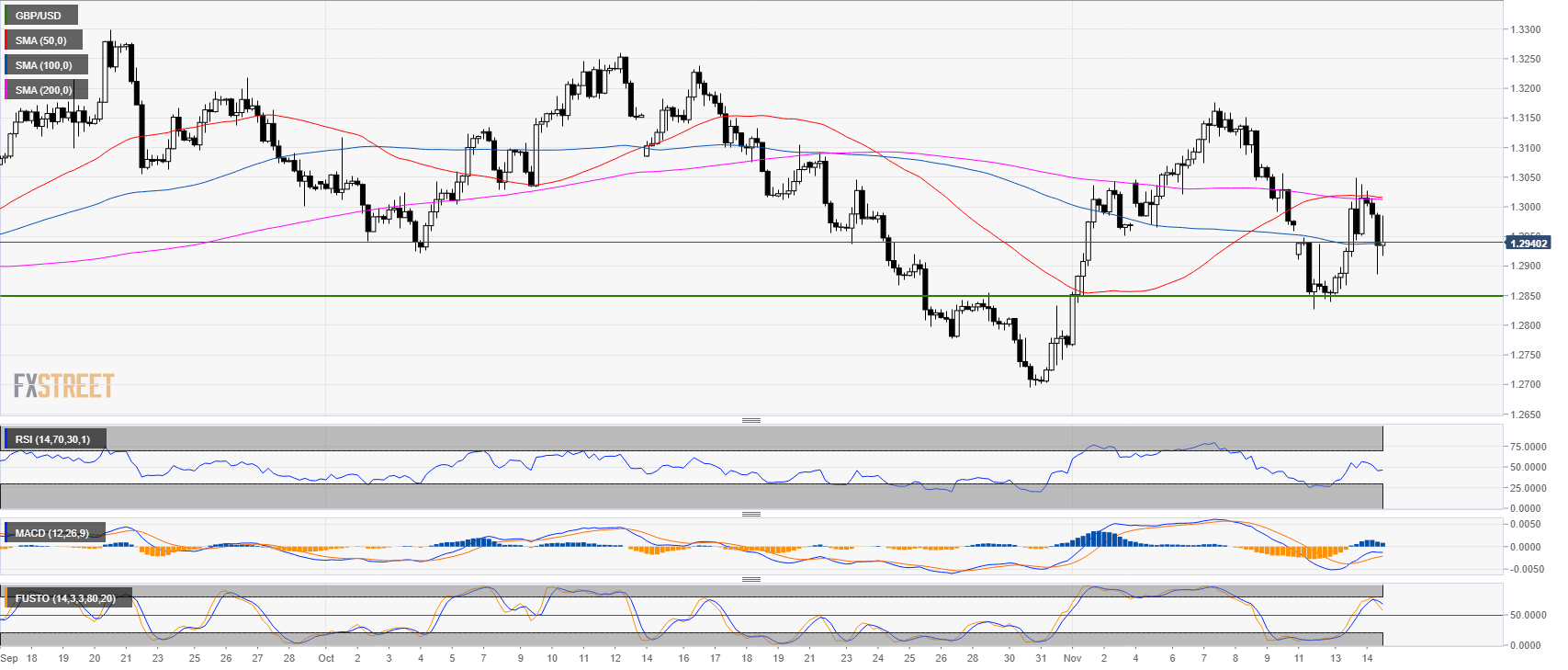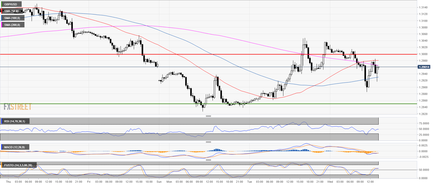 - GBP/USD is trading inside yesterday’s range trapped between the 50 and 100 SMA.
