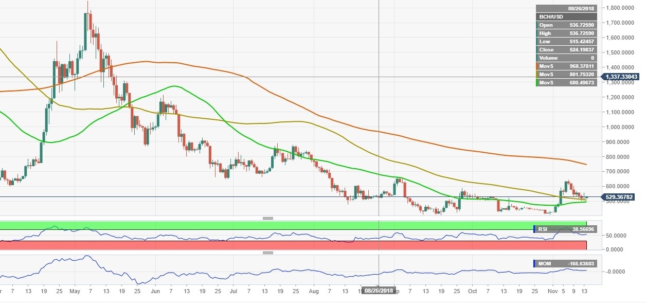 Bitcoin Cash has been very volatile ahead of the hard fork: The coin spiked to $646 on November 7 before retreating to $515 by the time of writing. BCH/USD has lost 15% of its value in recent 7 days.