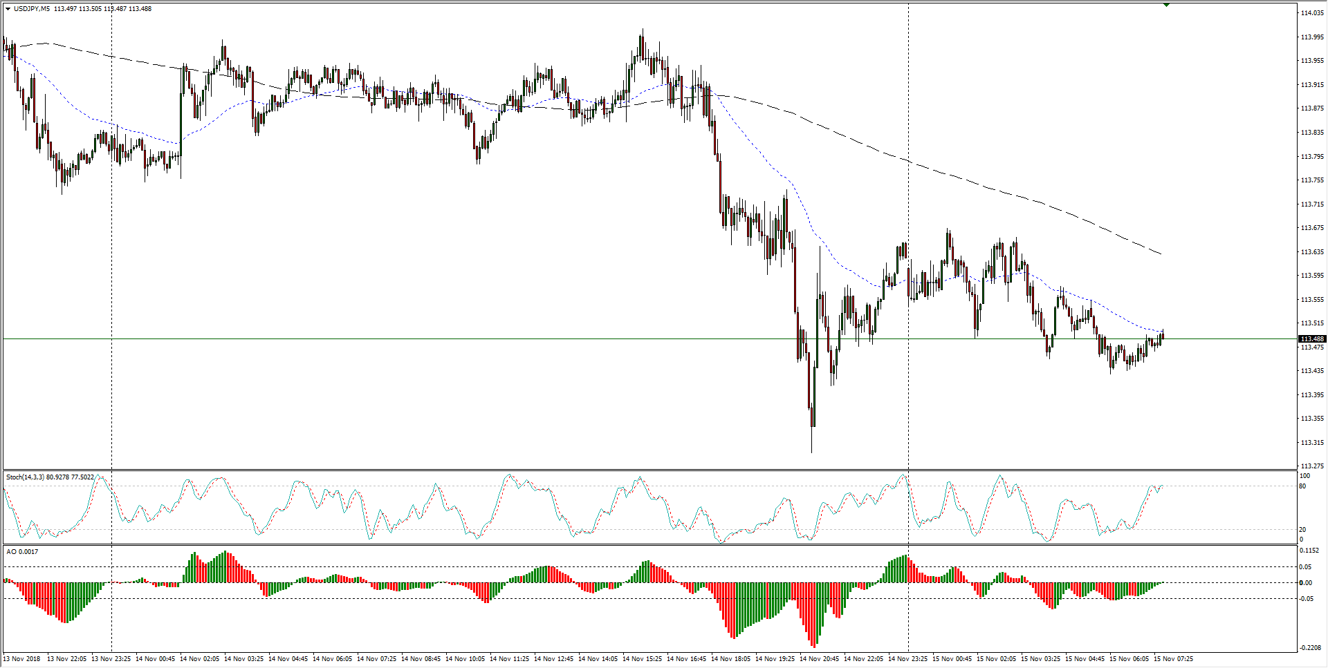 USD/JPY Chart, 5-Minute