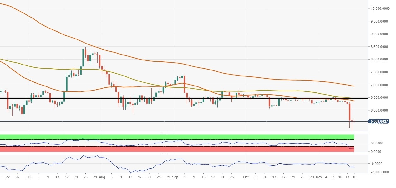 Bitcoin settled at $5,560 handle after one of the deepest collapses in History. The digital coin No. 1 has lost over 11.6% of its value in recent 8 days, which qualifies as the third largest weekly fall in history. Bitcoin’s market value has settled at $97.9B, which is the lowest level since October 28, 2017.