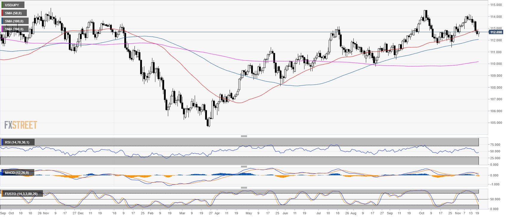 - USD/JPY is trading just above the 112.00 figure and the 100-day simple moving average (SMA).