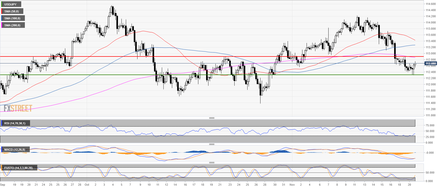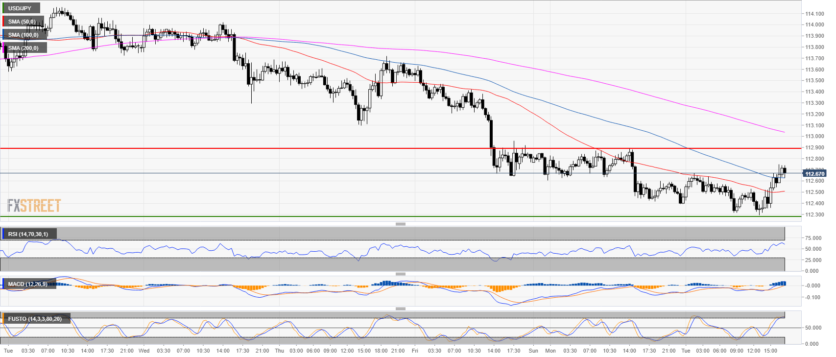- USD/JPY reclaimed the 50 and 100 SMA but bulls would need to hold the market above the 112.30 level.