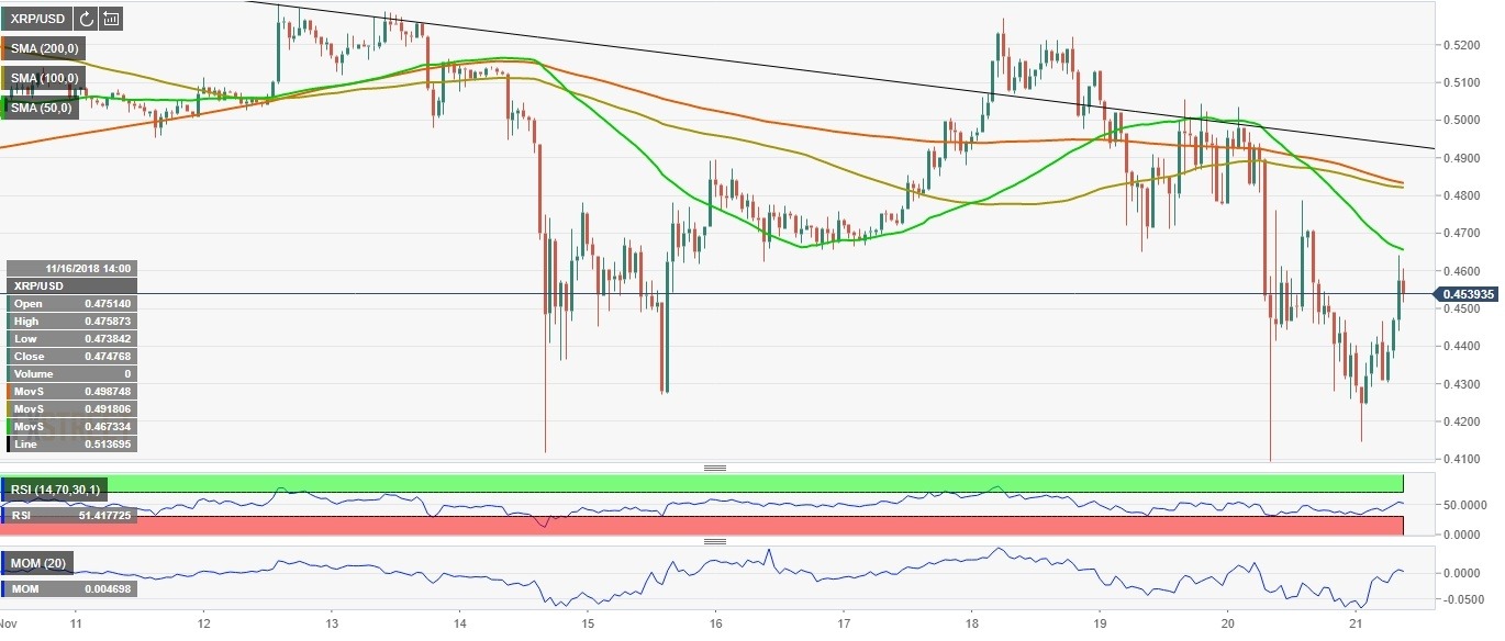XRP/USD is back above $0.45 handle after a short-lived collapse to $0.4094 on Tuesday. The second largest cryptocurrency with a market value of $18.3B has gained 2.3% in recent 24 hours and nearly 4% since the beginning of Wednesday, which is not so spectacular if compared to its peers.