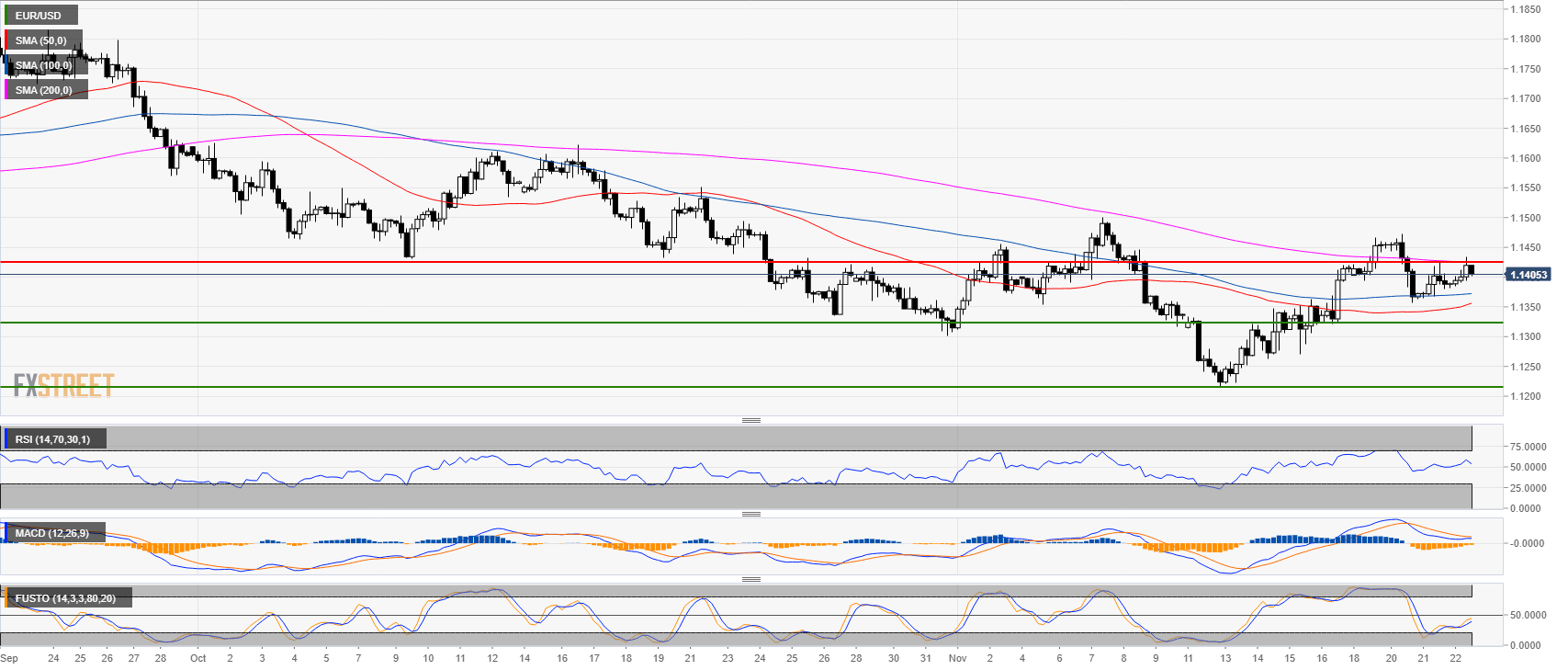 - EUR/USD is trading below its main simple moving averages (SMAs) on the daily chart.