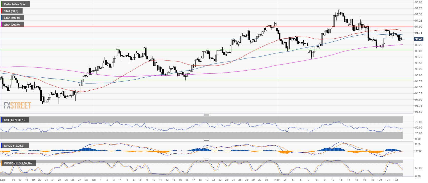 - DXY is trading in a bull flag. Bulls will need to retake 96.60 to lift the market to 96.90.