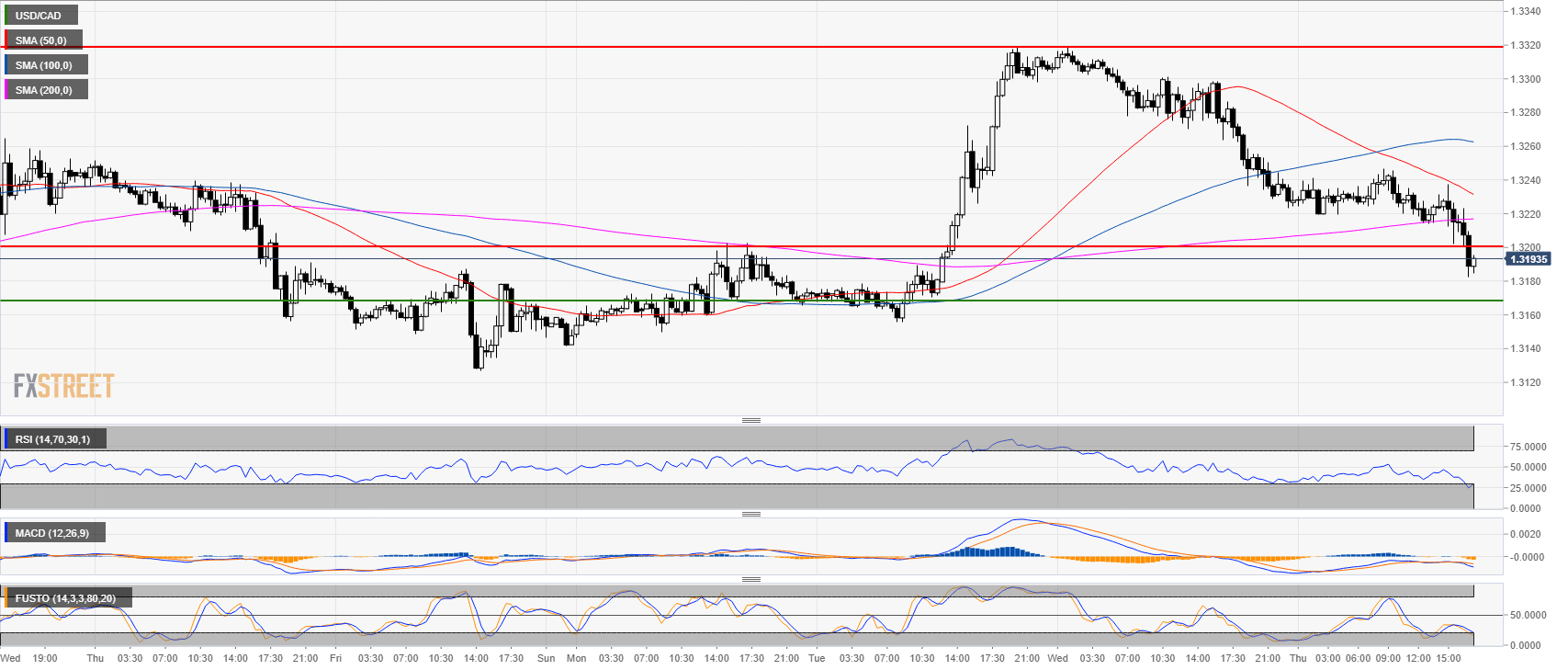 USD/CAD Technical Analysis: Greenback bulls throw in the towel as the market falls below 1.3200 figure